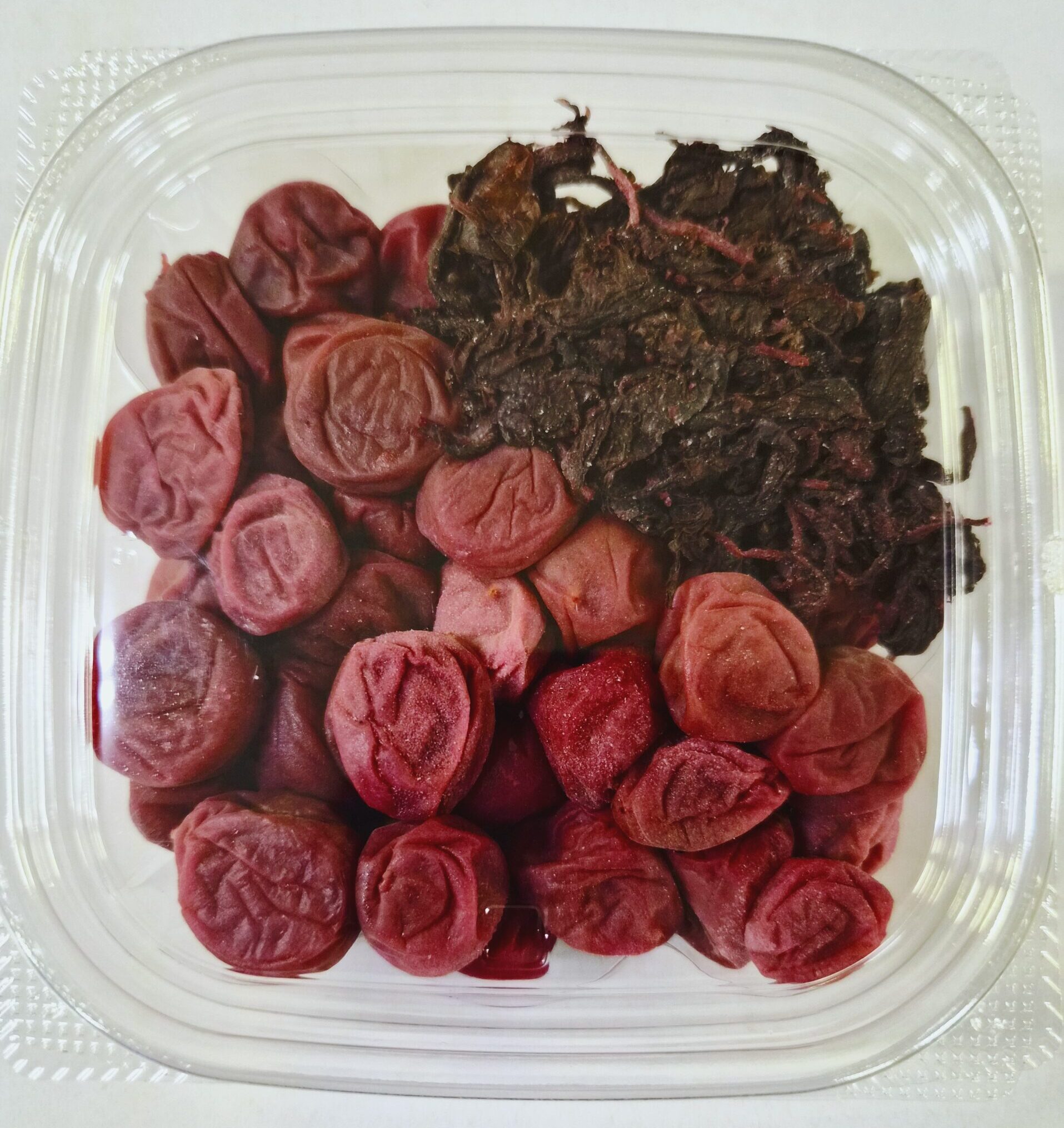 ■原材料名 小梅、漬け原材料(天日塩、ちりめんしそ)